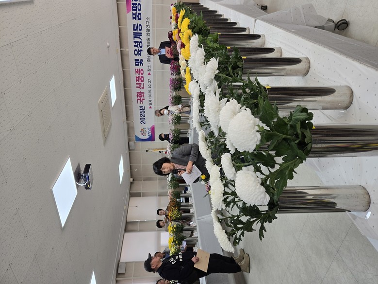 이번 품평회는 육종가와 국화 육묘업체, 수출농가, 온라인 유통 농가 등 국화 재배 전문가 60여 명이 참석한 가운데, 우수 계통을 선발하기 위해 화색, 화형 등을 참여자 직접 참여하는 선호도 조사 방식으로 진행됐다.
