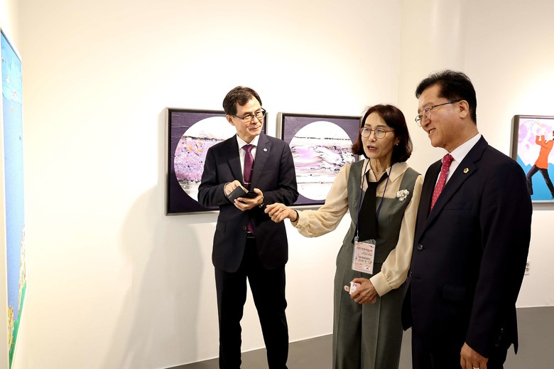 [대전 세계타임즈=이채봉 기자] 대전시의회 조원휘 의장은 25일 대전예술가의집에서 열린 ‘2024 제9회 대전국제예술제’에 참석해 (사)한국예총 대전광역시연합회 성낙원 회장을 비롯한 관계자들과 인사를 나누고 국제교류 전시에 참여한 국내외 작가에게도 감사의 마음을 전했다.