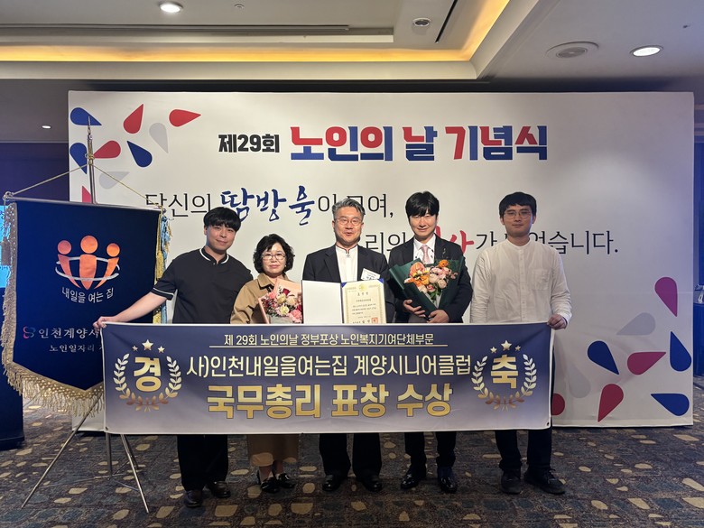 [계양구 세계타임즈=심하린 기자] 인천 계양구(구청장 윤환)는 지난 2일 2025년 ‘노인의 날’을 맞아 노인복지 발전에 기여한 공로를 인정받아 인천계양시니어클럽(관장 손재오)이 국무총리 표창을 수상했다고 밝혔다.