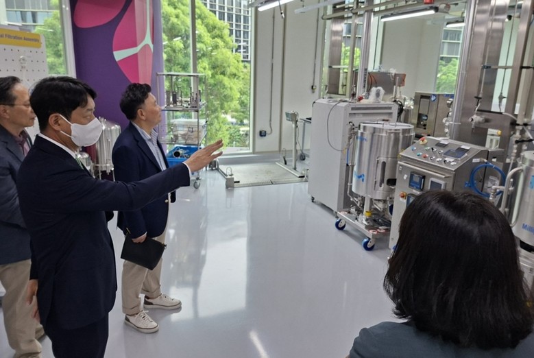 머크 싱가포르는 아시아 바이오의약품 생산 거점으로 바이오의약품 자동화 설비와 스마트팩토리 기반의 생산공정을 운영하고 있다. 이번 방문에서는 유연한 시험환경을 통해 현재 생산라인에 영향을 주지 않고 중요한 바이오 공정 문제를 해결할 수 있는 특정 공정을 재현해 볼 수 있는 M-Lab 협업센터와 CTS Lab(바이오 안전성 시험 연구소)을 둘러봤다.