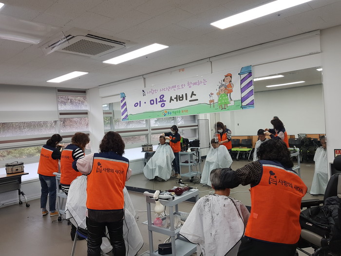동구아름다운복지관 최재천 관장은 “오늘 사랑의 사다리 밴드에서 미용봉사를 지원해주어서 큰힘과 위안이 된다.”면서 감사함을 전했다.