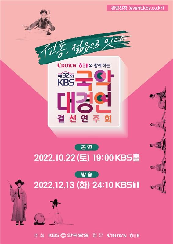오는 10월 22일 KBS홀에서 개최되는 제32회 KBS국악대경연 결선 연주회에서는 지난 5월부터 이루어진 공모 접수와, 7, 8월 예 본선을 거쳐 선정된 팀들이 공연이 이어질 예정이다.
