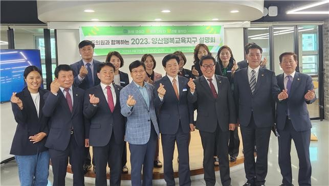 [경남 세계타임즈=최성룡 기자] 경상남도교육청 양산교육지원청(교육장 조영선)은 17일 오전 양산 신기초등학교 내 양산행복마을학교에서 이용식(양산 1, 국민의힘), 이영수(양산 2, 국민의힘), 최영호(양산 3, 국민의힘), 권혁준(양산 4, 국민의힘), 박인(양산 5, 국민의힘), 허용복(양산 6, 국민의힘) 도의원을 초청, 교육청 관계자들과 함께 2023 양산행복교육지구 설명회를 개최했다.