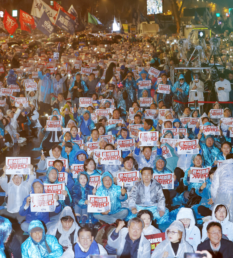 [세계타임즈 = 심귀영 기자] 16일 오후 서울 광화문광장 인근에서 열린 '김건희·윤석열 국정농단 규탄·특검 촉구 제3차 국민 행동의 날'에서 참가자들 정권 규탄 구호를 외치고 있다. 2024.11.16