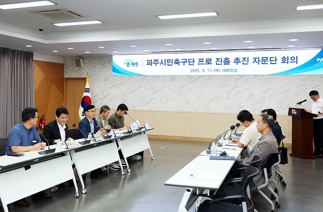 [파주시 세계타임즈=송민수 기자] 파주시는 9월 11일 파주시청 대회의실에서 ‘파주시민축구단 프로리그 진출 추진 자문단 회의’를 열고 프로구단 전환을 위한 본격적인 준비에 들어갔다.