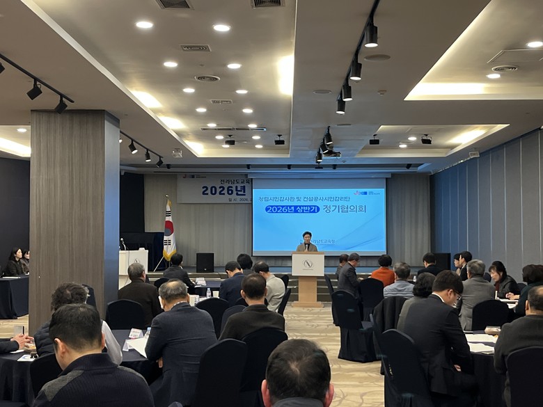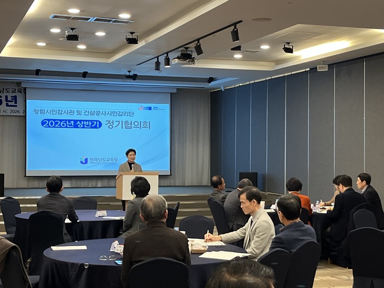 [전남 세계타임즈=우덕현 기자] 전라남도교육청(교육감 김대중)은 23일 나주에서 청렴시민감사관 및 건설공사 시민감리단 상반기 정기 협의회를 열고 2026년 활동 계획과 ‘청렴 전남교육’ 실현 방안을 논의했다.