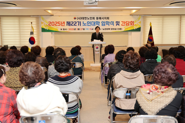[동해시 세계타임즈=김민석 기자] 올해 22기를 맞이한 (사)대한노인회 동해시지회(지회장 최종수) 부설 노인대학은 지난 3월 27일 대한노인회 동해시지회 노인대학 강의실에서 2025년도 제22기 노인대학 입학식을 개최했다.