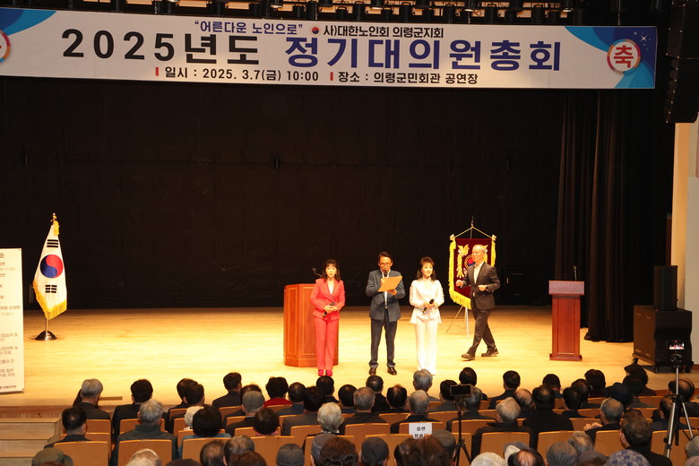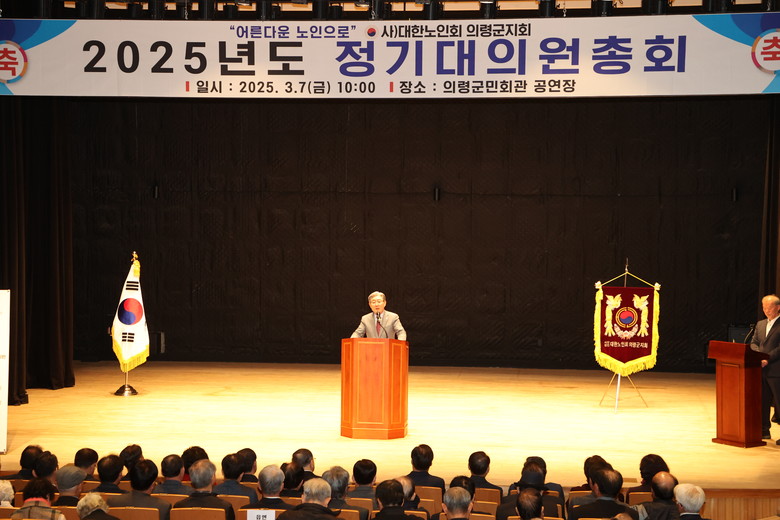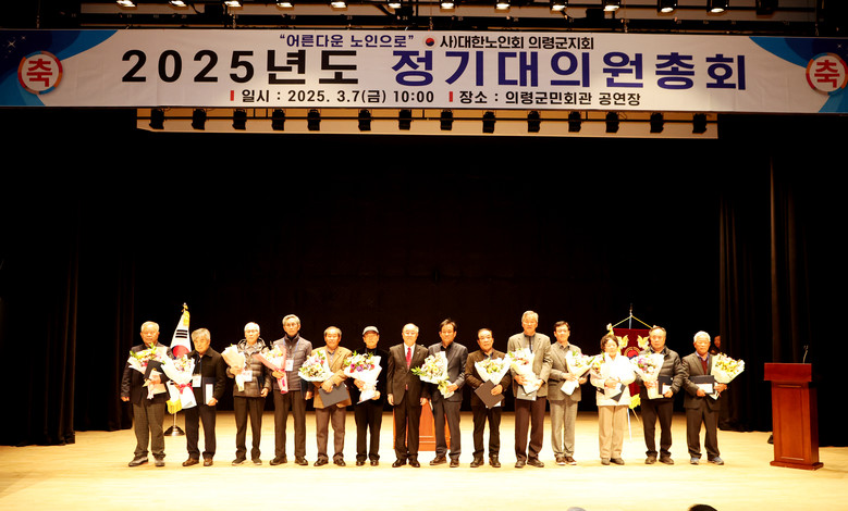 [의령군 세계타임즈=최성룡 기자] 대한노인회 의령군지회(지회장 장혁두)는 7일 의령군민회관 공연장에서 오태완 군수, 김규찬 의령군의회 의장을 비롯한 기관단체장, 대의원 등 300여 명이 참석한 가운데 2025년 정기총회를 개최했다.