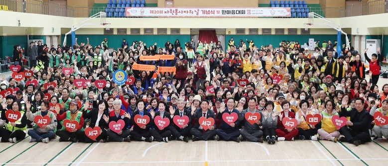 [서구 세계타임즈=이채봉 기자] 대전 서구자원봉사센터(센터장 이영희)는 자원봉사자의 날을 맞아 11일 도솔다목적체육관에서 기념식을 열고, 지역 곳곳에서 묵묵히 땀 흘려온 자원봉사자들의 노고를 격려했다.