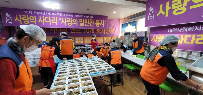 [대전=세계타임즈 이채봉 기자] 대전광역시 SNS 일만명 봉사단체 사랑의 사다리 밴드(리더 이정제)는 7일 오전9시~오후12시, 대덕구 중리동에 위치한 사랑의 사다리 밴드 사무실에서 밑반찬 3종류를 만들어서 동구, 대덕구 소외계층 58가정에 전달을 하면서 우리 사회의 따뜻한 사랑을 실천 하였다.