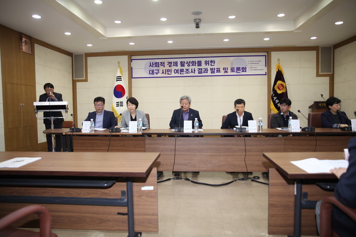 「사회적기업활성화 대구네트워크」가 주최하고 「대구YMCA」가 주관한 ‘사회적경제 활성화를 위한 대구시민 여론 조사 결과 발표 토론회’가 17일(수) 오후 2시, 대구광역시의회 3층 회의실에서 대구시의회 임태상 의원 등 6명의 토론자가 참석한 가운데 개최됐다.