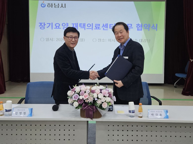 ◦ 민‧관 손잡고 재택의료 돌봄망 촘촘히 구축 [세계타임즈=하남시 송민수 기자] 하남시보건소는 지역 의료기관인 제일의원과, 2026년 3월 27일 시행되는 「의료·요양 등 지역돌봄의 통합지원에 관한 법률」에 발맞춰 ‘장기요양 재택의료센터 시범사업’ 추진을 위한 업무협약을 체결했다고 21일 밝혔다.
