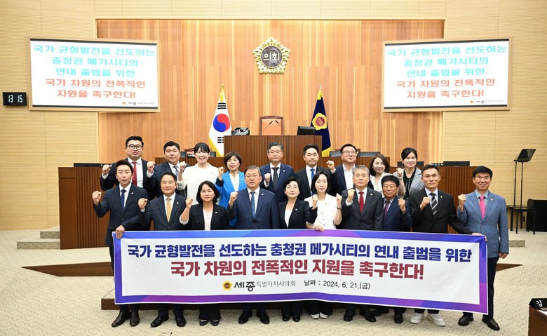 한편, 세종시의회는 ‘충청지방정부연합 출범 및 지원 촉구 결의안’을 대통령(비서실장)을 비롯해 국회의장, 더불어민주당 대표, 국민의힘 대표, 국무총리(국무조정실장), 기획재정부장관, 국회사무처장, 행정중심복합도시건설청장 등에 이송할 예정이다.