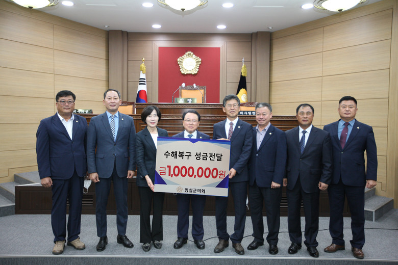 임실군의회 의원 8명 모두와 의회사무과 직원들의 자발적인 참여로 마련된 수해복구 특별성금은 실의에 빠진 수재민들을 위한 실질적인 구호 활동과 무더위 속에서 빠르게 일상으로 회복될 수 있도록 복구.지원하는 데 사용될 예정이다.
