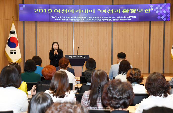 [울산=세계타임즈 이호근 기자] 시의회 이미영 부의장은 3일 오후 2시, 시의회 1층 시민홀에서 울산시민 100여명이 참석한 가운데 ‘여성과 환경보전’을 주제로 2019여성 아카데미를 개최하였다.