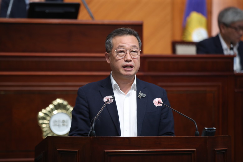 한경봉 의원은 “지난 3월, 2023년도 제1회 추경 예산안 심의에서 지적한 성산면 소재 농산물 홍보탑 부지 임차료를 군산시가 20년간 잘못 지급한 부분에 대하여 발언하고자 한다”고 하였다.