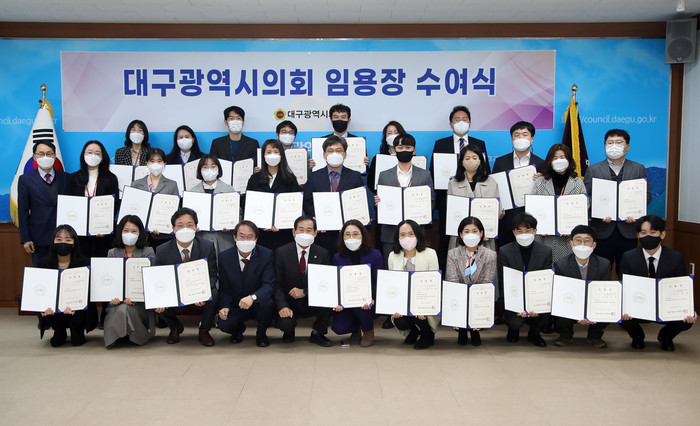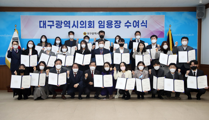 [대구=세계타임즈 한성국 기자] 대구광역시의회(의장 장상수)가 1월 25일 자로 5급(팀장급) 이하 26명의 인사를 단행했다. 시의회는 이날 오전 임용장 수여식을 개최하면서 지난 1월 13일 자 간부급 인사에 이어 ‘인사권 독립’에 따른 첫 정기인사를 마무리했다.