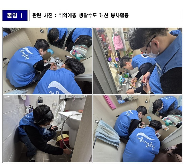 공단 임직원들은 20일 취약계층 50가구를 방문해 노후·불량 수전을 절수형 제품으로 교체하고, 생활 누수 빈도가 높은 시설과 계량기를 중점 점검하는 누수진단 서비스를 제공했다. 이번 봉사활동은 세계 물의 날(3월 22일)을 맞아 중계종합사회복지관과의 협업을 통해 우선 지원이 필요한 가구를 추천받아 진행했다. 단순한 설비 교체를 넘어 취약계층의 실질적인 생활 환경 개선에 초점을 맞췄다.