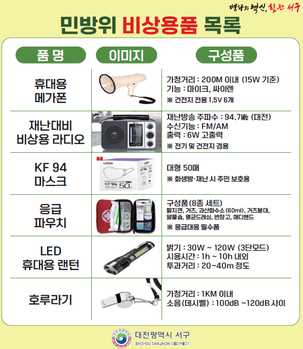 비상용품함에는 라디오, 소형 메가폰, 손전등, 응급 처치세트 등 생존과 초기 구호에 필요한 물품이 비치됐다. 구는 물품이 실제 상황에서 즉각 활용될 수 있도록 정기 점검과 유지관리를 지속할 계획이다.