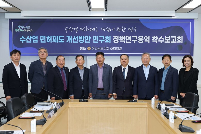 [전남 세계타임즈=우덕현 기자] 전남도의회 의원연구단체 수산업 면허제도 개선방안 연구회(대표의원 신의준)는 지난 5월 9일 전라남도의회 소회의실에서 ‘수산업 면허제도 개선에 관한 연구’ 용역에 대한 착수보고회를 열고 본격적인 연구 활동을 시작했다.