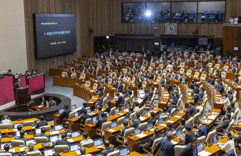 [세계타임즈 = 진정화 기자] 민주당.국민의힘이 4일 쟁점 법안인 방송법을 놓고 충돌했다.더불어민주당이 '국민에게 방송을 돌려준다'며 추진한 방송법이 국회 본회의에 상정되자 국민의힘은 '방송장악 악법'으로 규정하며 즉각 필리버스터(무제한 토론)에 돌입했다.1년여만에 '필리버스터 대치 정국'이 재연된 것으로, 방송법을 빼고도 노란봉투법과 상법 개정안 등 쟁점 법안들이 산적해 여야 간 대립은 더욱 심화할 전망이다.'대야 강경 노선'을 천명한 민주당의 정청래 대표 선출은 한동안 여야 간 협치보다는 격한 공방이 오가는 싸늘한 정국을 예상케 하고 있다.