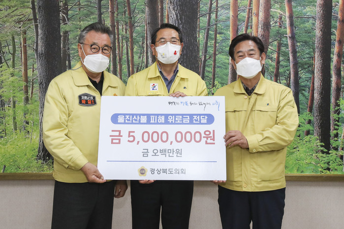 [경북=세계타임즈 한성국 기자] 경상북도의회(의장 고우현)가 3월 17일 울진 산불 피해 이웃돕기 의연금 500만원을 전달해 따뜻한 기부행렬에 동참했다.
