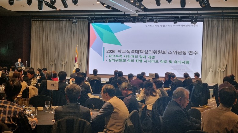아울러 도교육청은 23일 수원 노보텔에서 ‘2026년 상반기 학교폭력대책심의위원회 소위원장 역량 강화 연수’를 개최했다. 200여 명의 소위원장이 참여한 연수는 ▲회의 운영 리더십 ▲사안 처리 절차와 법령 이해 ▲판례·행정심판 사례 분석 ▲제도 개선안 등을 다뤘다.