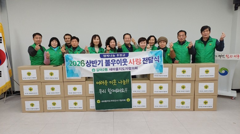 양붕석 갈마2동 새마을지도자협의회장은 “작은 정성이지만 새해를 맞아 이웃들에게 따뜻한 위로와 희망이 전해지길 바란다”며 “앞으로도 지역사회와 함께하는 나눔 활동을 꾸준히 이어가겠다”고 말했다.