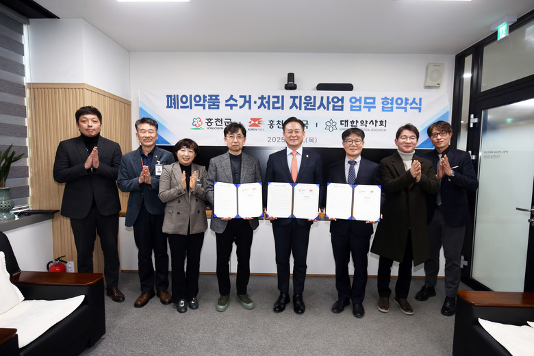 신영재 홍천군수는 “가정 내 폐의약품이 매립되거나 하수로 배출되면 토양과 수질 오염을 유발하고, 생태계 교란의 원인이 될 수 있다”라며, “이번 협약을 통해 각 기관이 협력하여 폐의약품이 안전하게 수거되고 처리될 수 있게 하겠다”라고 강조했다.