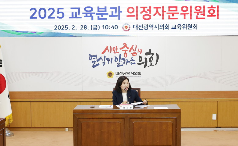 [대전 세계타임즈=이채봉 기자] 대전시의회 교육위원회(위원장 이금선)는 28일 대전시의회 소통실(3층)에서 2025년 교육분과 의정자문위원회 회의를 개최했다.
