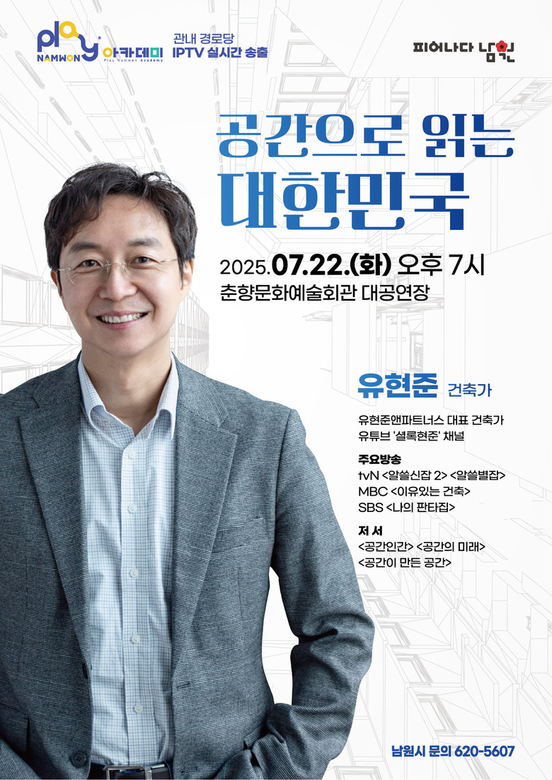 플레이(Play)남원 아카데미는 사전 예약 없이 누구나 참여할 수 있고, 카카오 채널 친구 추가 시 매월 자세한 강연 정보를 받아볼 수 있으며, 당일 강연은 관내 경로당 IPTV로도 실시간 송출된다.