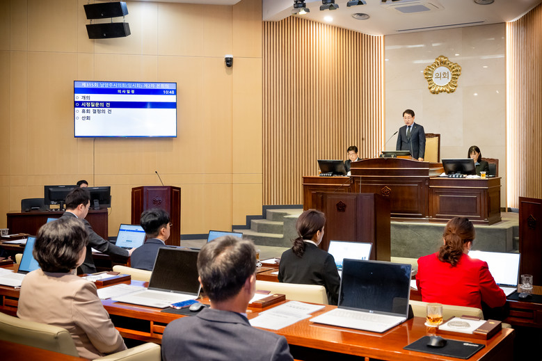 [남양주시 세계타임즈=송민수 기자] 남양주시의회(의장 조성대)는 24일 제315회 임시회 제2차 본회의를 열고 지난 제1차 본회의에 이어 시정 주요 현안에 대한 날카로운 시정질문을 이어갔다.