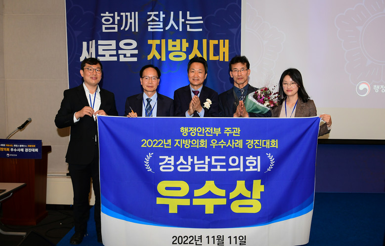 [경남 세계타임즈=최성룡 기자] 경상남도의회(김진부 의장)가 11일 부산 벡스코에서 열린 「2022 전국 지방의회 우수사례 경진대회」에서 행정안전부장관 기관표창 ‘우수상’을 수상했다고 밝혔다.
