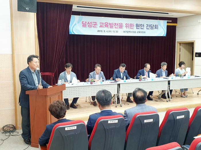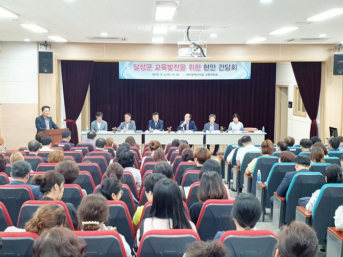 [대구=세계타임즈 한성국 기자] 대구시의회 교육위원회는 9월 4일 오후 3시 30분 대구포산초등학교 시청각실에서 현풍권역 소재 19개 학교의 교장, 운영위원 및 학부모를 초청해 현장의 목소리를 청취하고 교육현안 문제해결과 의정활동 반영을 위한 간담회를 개최하였다.