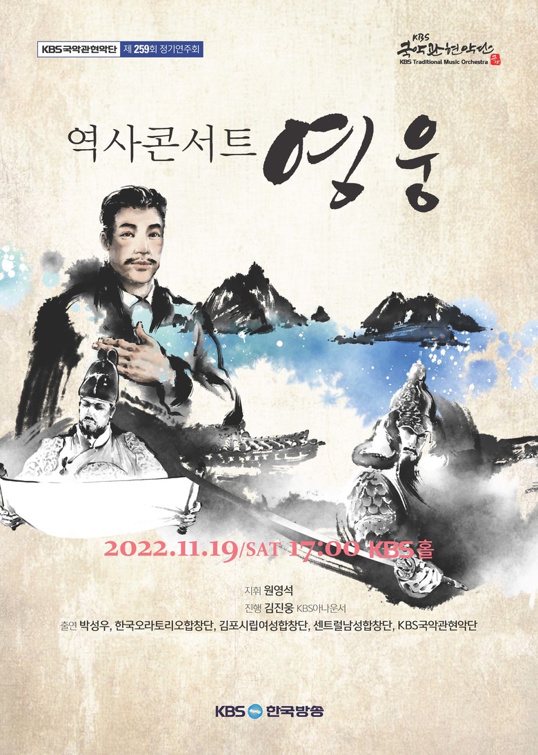 KBS국악관현악단 제259회 정기연주회 <역사콘서트 영웅>에서는 우리 시대의 영웅을 그린 우리 음악으로 가슴을 울리는 공연을 선보인다.