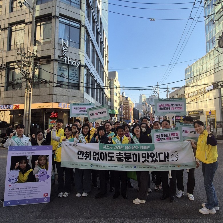 이번 캠페인은 11월 ‘음주폐해예방의 달’을 맞아 수능 직후 청소년 음주 위험 증가와 연말연시 음주로 인한 안전사고를 예방하기 위해 마련됐다. 서초구보건소를 비롯해 서초경찰서, 한국외식업중앙회 서초구지회, 까리따스알코올회복센터, 술래잡기단 등 총 16개 민·관 기관이 함께했다.