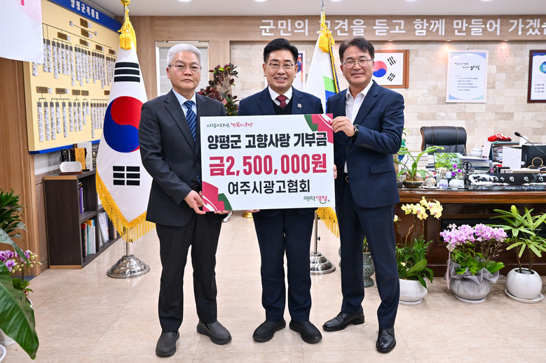 양평광고협회 이희연 회장은 “고향사랑기부제를 통해 지역 간 교류와 협력이 더욱 활발해지길 바란다”며 “앞으로도 여주시와 지속적인 상호 기부를 이어가며 지역사회 발전에 힘을 보태겠다”고 말했다.