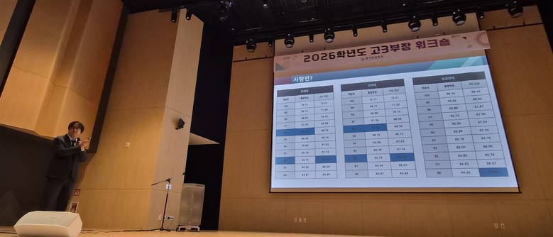 이번 연수는 2026학년도 입시결과 분석을 바탕으로 2027학년도 대입전형 소개, 변화된 대입진학 정보 안내 등 올해 새롭게 진학업무를 맡은 고교 3학년 부장교사와 담임교사에게 도움을 주고자 마련했다.