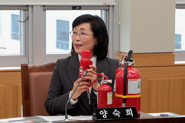 [강원도 세계타임즈=김민석 기자] 양숙희 강원특별자치도의원(안전건설위, 춘천6)은 11월 22일(금), ‘강원소방본부 예산안’ 심의에서 ‘차량용 소화기 의무설치’ 관련 홍보 및 도민 인식제고 대책을 촉구하였다.