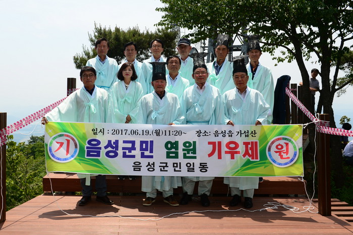 음성군은 19일 가섭산(해발710m) 정상 봉화대에서 음성군농업인단체연합회(회장 김영호) 주관으로 극심한 가뭄으로 인한 농작물 피해를 줄이고, 풍년 농사를 기원하는 의미에서 기우제를 지냈다.