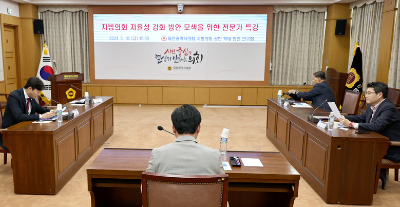 [대전 세계타임즈=이채봉 기자] 대전시의회 이재경 의원(서구3, 국민의힘)이 회장을 맡고 있는 ‘지방의회 권한 확대 방안 연구회’는 10일 시의회 소통실에서 ‘지방의회 자율성 강화 방안 모색을 위한 전문가 특강’을 개최했다.
