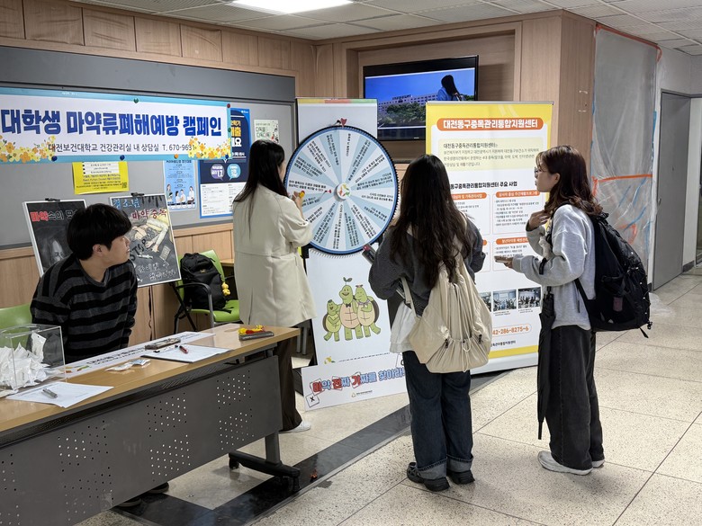 구는 대전보건대학교와 협력해 교내에 홍보 부스를 설치하고, 학생과 교직원을 대상으로 마약류 중독의 위험성을 알리는 홍보 자료 배포, 룰렛 퀴즈를 통한 마약류 오남용 정보 바로 알기 등 다양한 참여형 프로그램을 진행했다.
