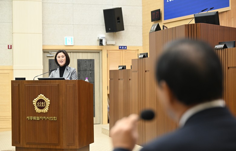 [세종 세계타임즈=이채봉 기자] 세종특별자치시의회 김현미 의원(소담동, 더불어민주당)은 12일 제104회 임시회 제2차 본회의 시정질문을 통해 최민호 시장의 시정 4기 재정 운용의 한계를 지적하며, 소통과 협치가 실종된 시정 운영에 대한 성찰과 남은 임기 동안의 책임 있는 마무리를 촉구했다.