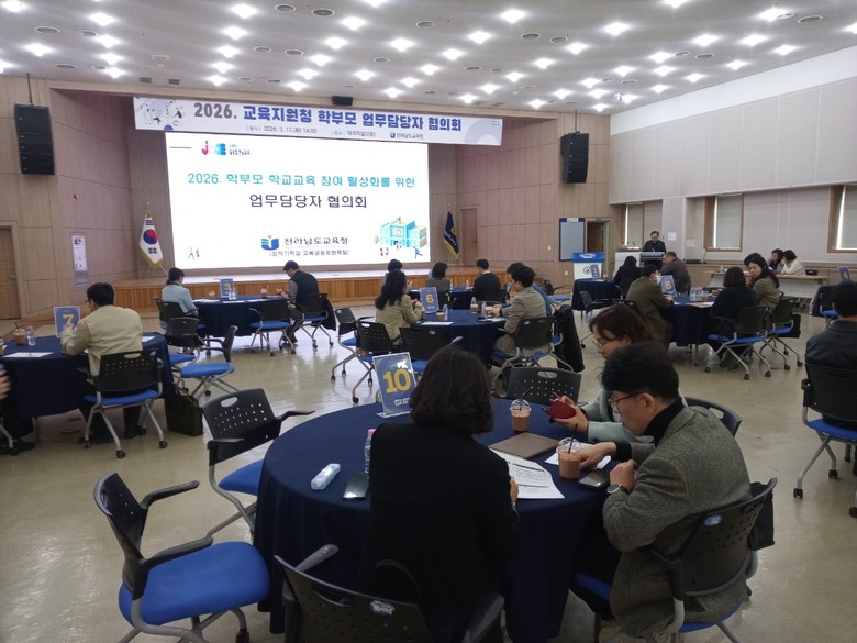 [전남 세계타임즈=우덕현 기자] 전라남도교육청(교육감 김대중)은 17일 청사 대회의실에서 ‘교육지원청 학부모 업무 담당자 협의회’를 열고, 학부모 학교교육 참여 활성화 방안을 모색했다.