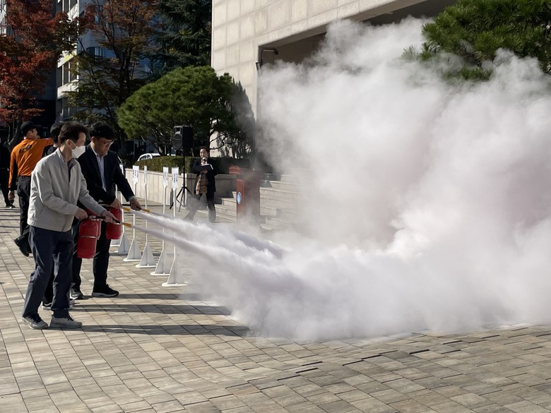 이번 훈련은 청사 내 화재 발생 상황을 가정하여 대피 및 초기 진화 절차를 숙달하고, 비상상황 시 대응역량을 강화하기 위해 마련됐다.
