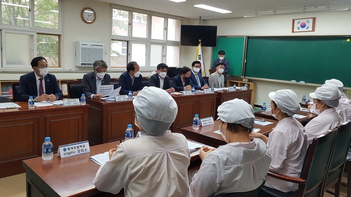 위원들은 학교 급식실 시설 상태를 확인하고, 충청북도교육청 관계관으로부터 학교 급식실 및 조리종사자의 건강상태와 작업환경에 대해 보고 받았다.