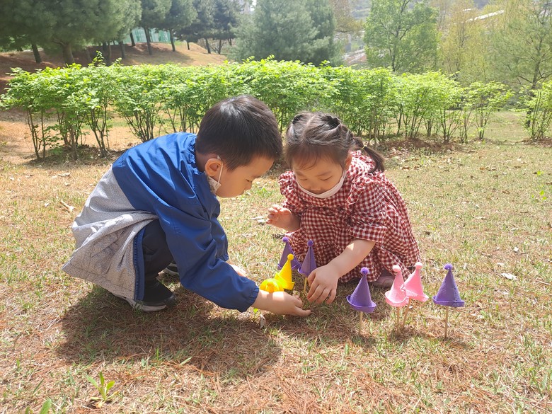 유아들은 산현공원에서 봄이 되어 변화한 자연환경을 체험하고, 다양한 자연의 색을 탐구하며 “나뭇가지에 새로운 잎이 자라났어요.”, “소풍을 나온 것 같아서 기분이 좋아요.”라며 소감을 밝혔다.