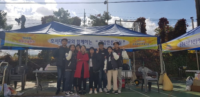 이 날 호서대학교 물리치료학과에서는 황영인 호서대학교 물리치료학과 교수 및 대학생자원봉사자 7명이 참여하여 참여 어르신들 대상으로 건강튼튼교실 부스를 운영했다.