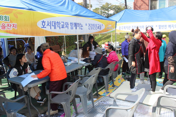 올해도 3월부터 황영인 호서대학교 물리치료학과 교수와 대학생자원봉사자가 참여하여 건강 상담, 검사 및 물리치료, 정서적 지지 등을 지원하며 이번 ‘따뜻고을잔치’ 행사에도 참여하였다.