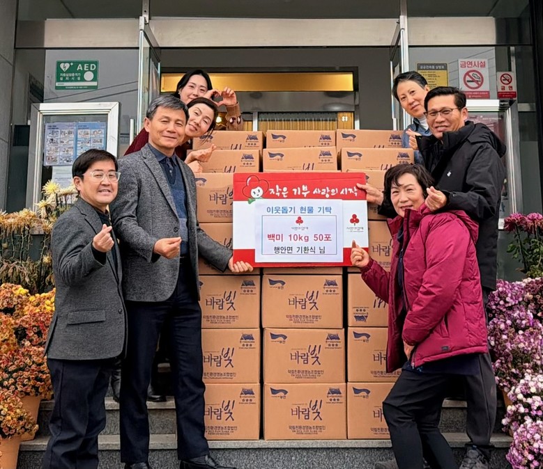 은진 행안면장은 “매년 잊지 않고 이웃 사랑을 실천해 주시는 기환식 대표님께 진심으로 감사드리며, 기탁된 백미는 도움이 필요한 이웃들에게 정성껏 전달해 따뜻한 연말을 보낼 수 있도록 하겠다”고 전했다.
